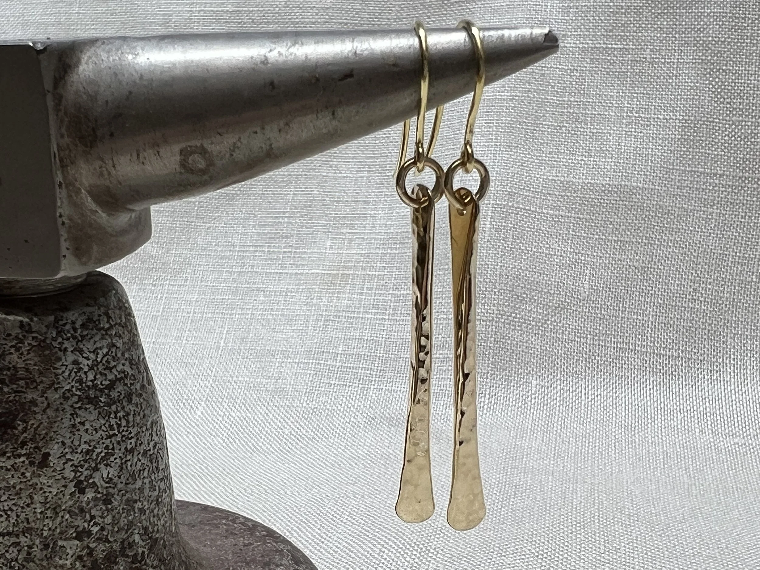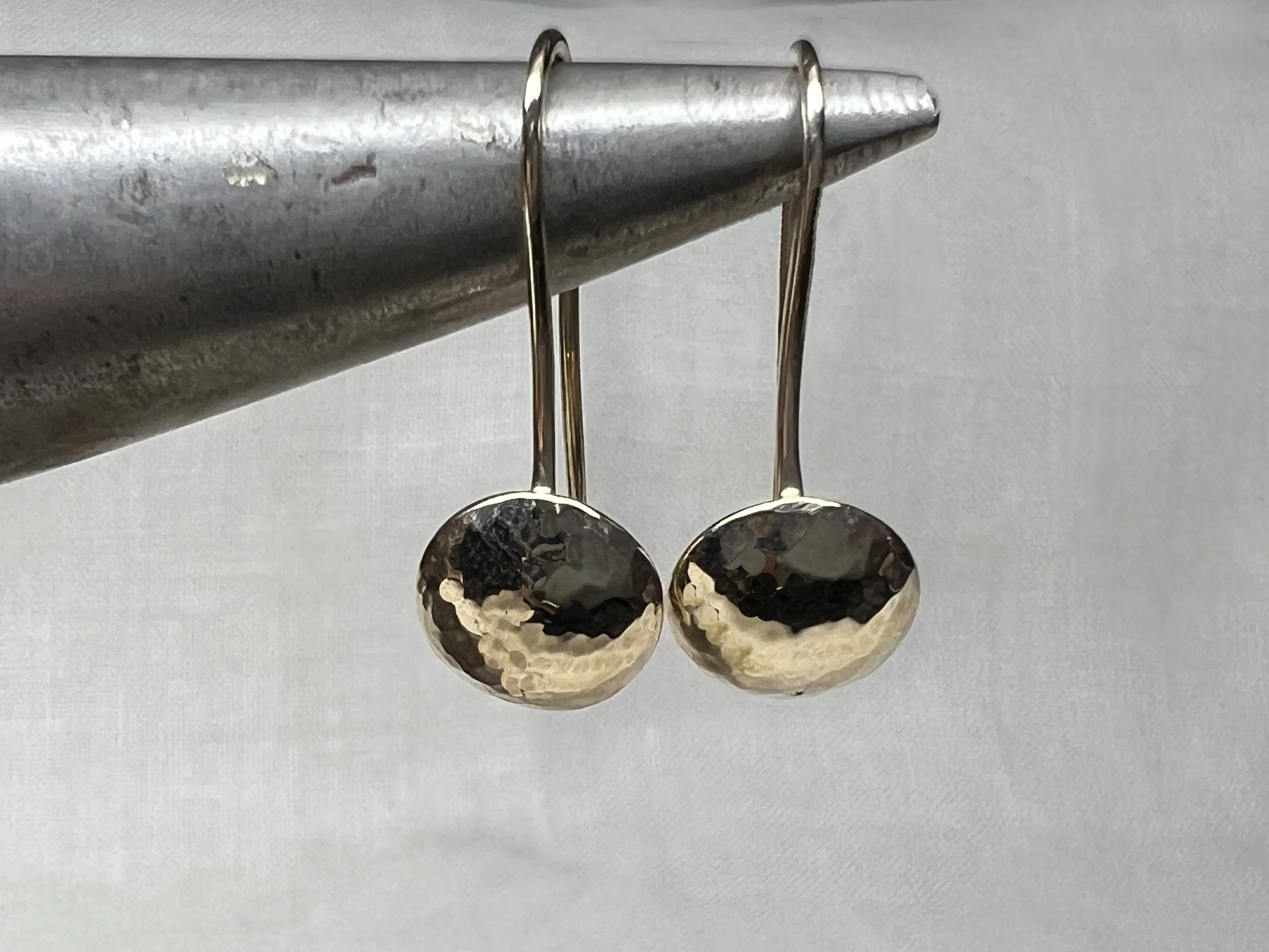 9ct handmade domed hammered drop earrings