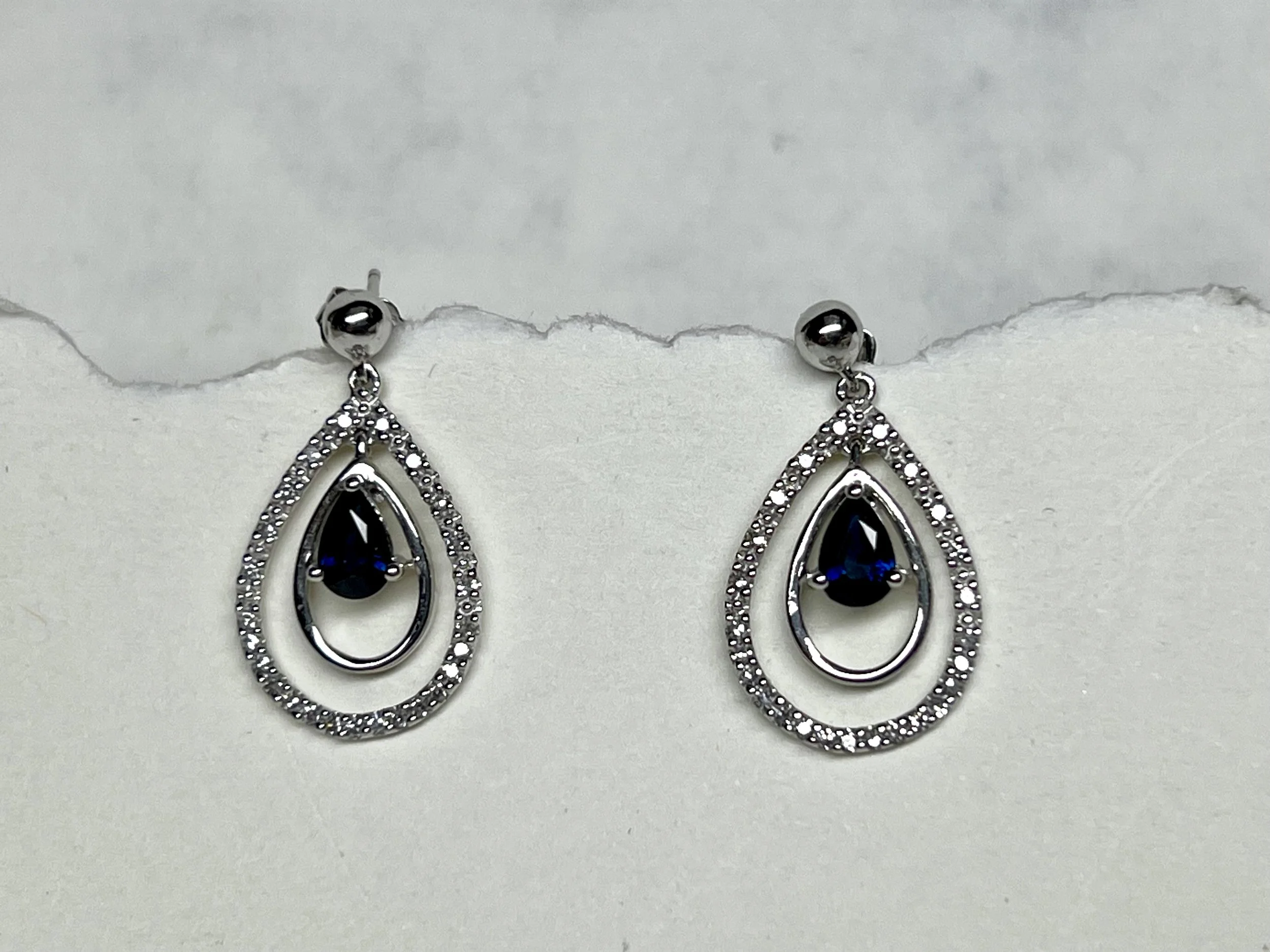 9ct white gold sapphire & diamond drops
