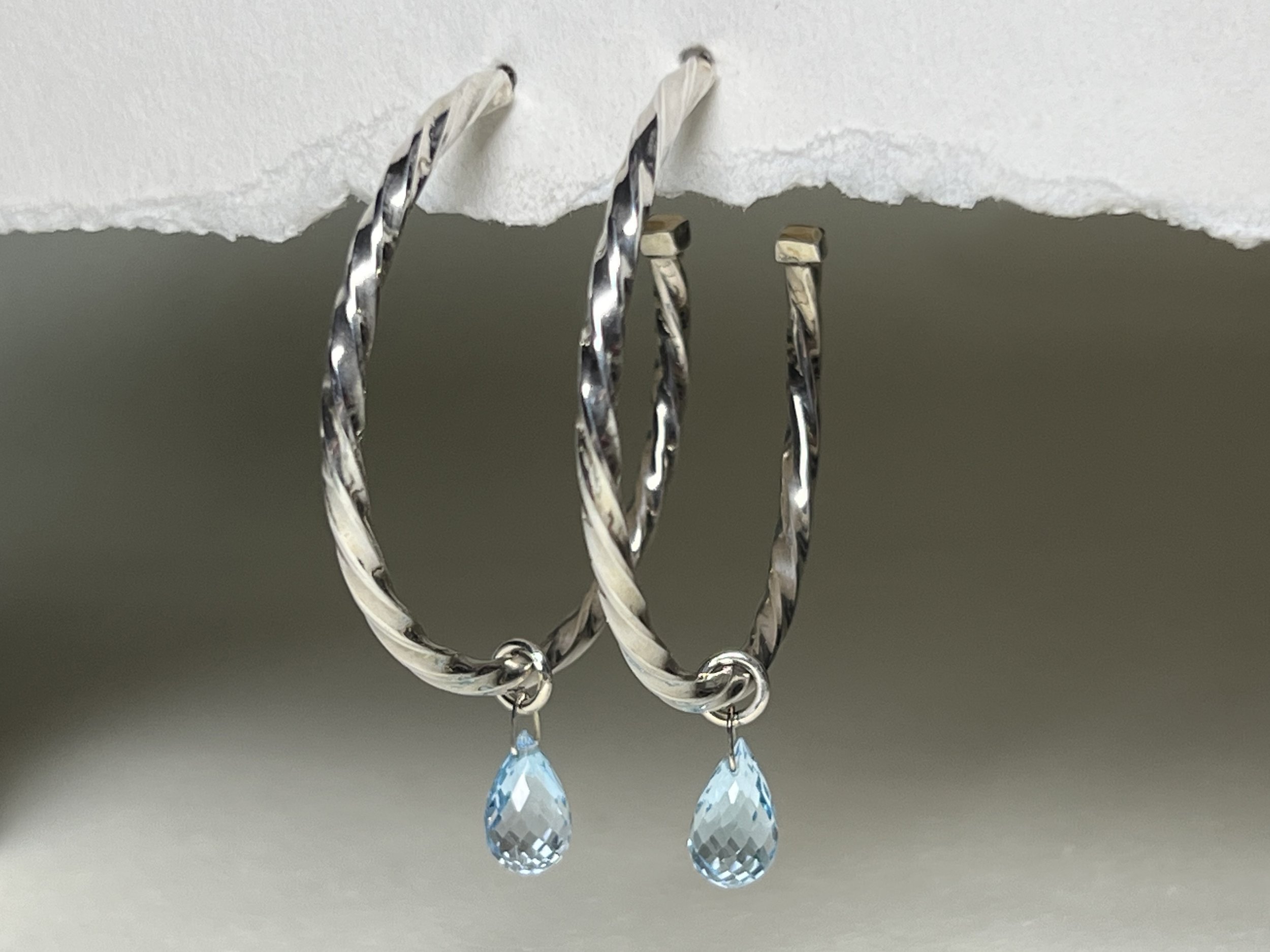 THREE COLOUR 9CT GOLD TRIPLE HEARTS DROP EARRINGS