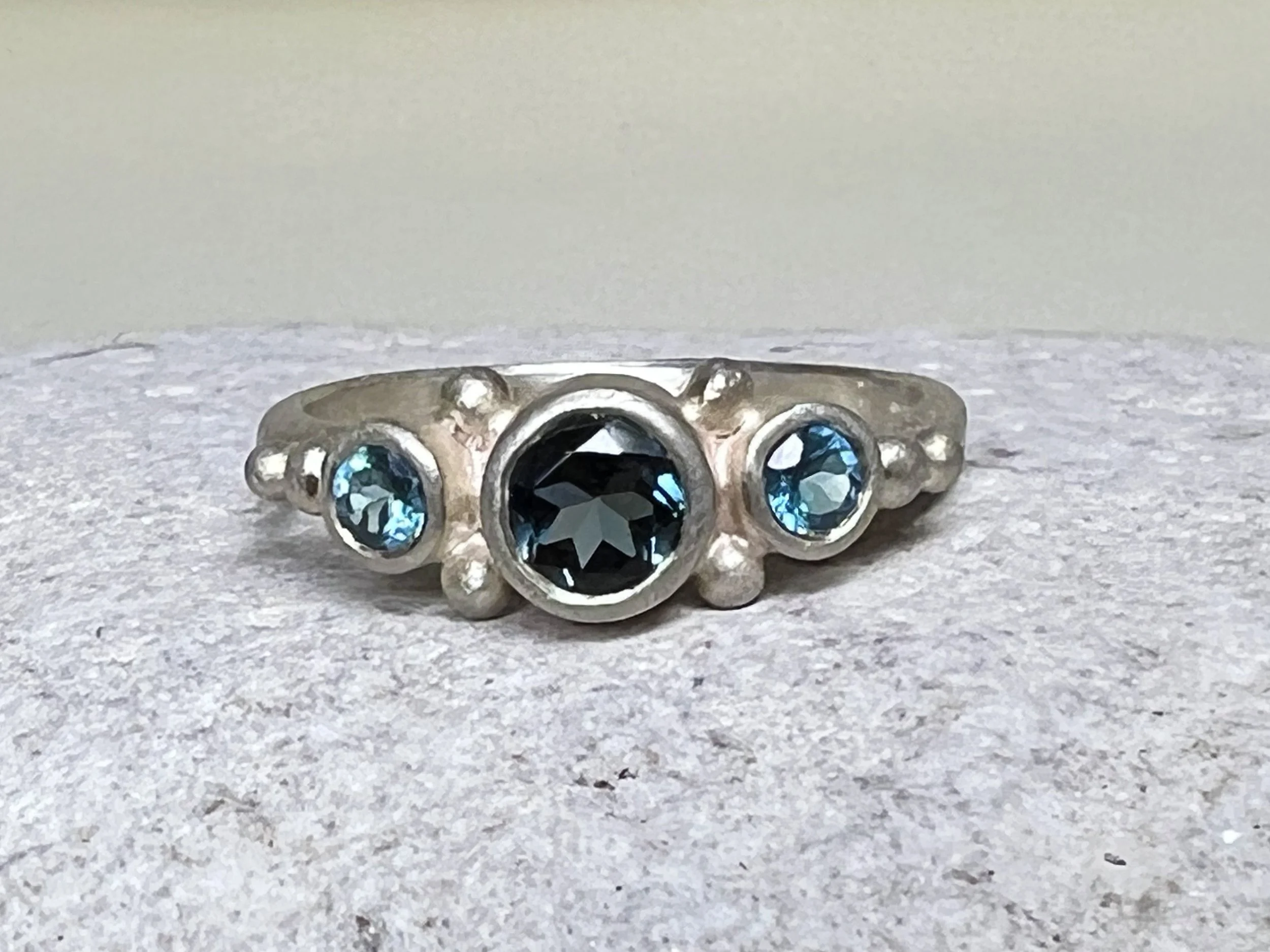 SILVER & 9CT GOLD CABOCHON KYANITE RING